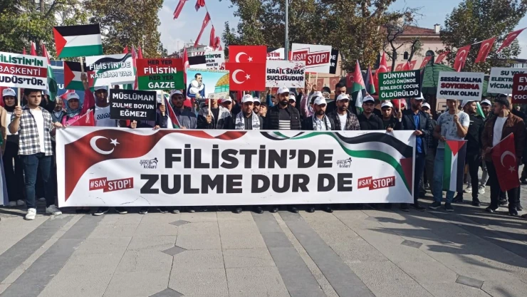 Elazığ AK Parti Gençlik Kolları 15 Temmuz Demokrasi Meydanı'nda toplanarak, Gazze'deki zulme dur dediler.