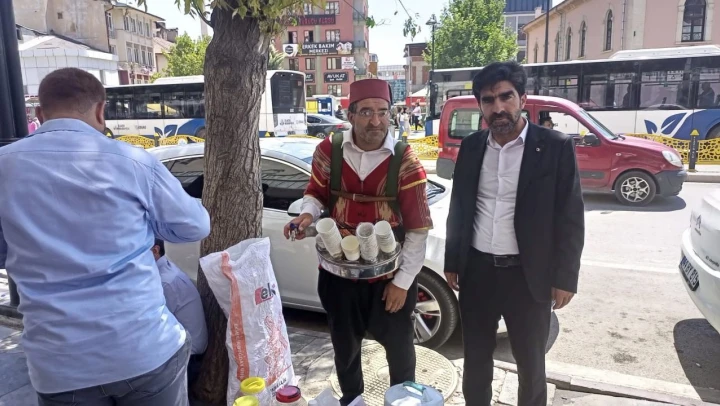 Elazığ Kahveciler ve Kıraathaneciler Odası Başkanı Ferhat Evsen, vatandaşlara meyan kökü ve reyhan şerbeti ikram etti. İzzetpaşa Camisi önünde Cuma namazından çıkan vatandaşlara ikram edilen şerbetler, yazın kavurucu sıcağında vatandaşlar tarafından büyük bir memnuniyetle karşılandı.