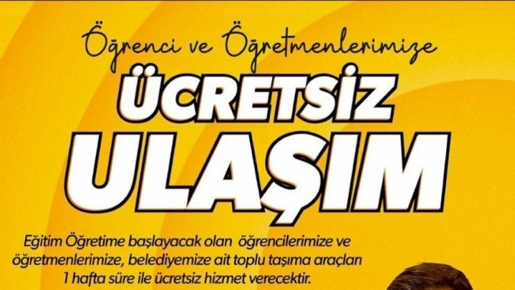 Konu ile ilgili açıklama yapan Başkan Şerifoğulları; “Kıymetli hemşehrilerim, 11 Eylül Pazartesi günü Eğitim Öğretime başlayacak olan öğrencilerimize ve öğretmenlerimize, Belediyemize ait olan toplu taşıma araçlarımız 1 hafta süre ile ücretsiz olarak hizmet verecektir.. Tüm öğrencilerimizin ve öğretmenlerimizin, başarılı bir dönem geçirmelerini diliyorum.”