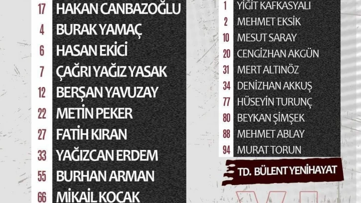 Elazığspor'un Karşıya Maçı 11'i belli oldu...