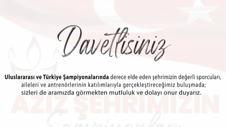 Elazığ Atatürk Stadında düzenlenecek olan törenle ilgili olarak açıklamada bulunan Gençlik ve Spor İl Müdürü Abdulsamet Eren, “Dünya Şampiyonluğu, Avrupa Şampiyonluğu ve Türkiye Şampiyonluğu dereceleriyle şehrimizi gururlandıran sporcularımızın; aileleri, antrenörleriile bir araya geleceğiz. İl Protokolümüzün de katılımlarıyla, başarılarını kutlamak amacıyla düzenleyeceğimiz törende sporcularımızın başarıları ile bir kez daha gururlanacağız. Kutlama etkinliği saat 13.30 da Atatürk stadında gerçekleşecek.” dedi.