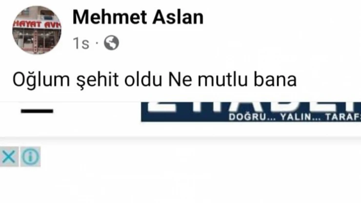 Irak'ın kuzeyinde bölücü terör örgütü mensupları tarafından yapılan saldırı sonucunda şehit olan Piyade Sözleşmeli Er Kemal Aslan'ın babası sosyal medyadan yaptığı paylaşımla duygulandırdı.