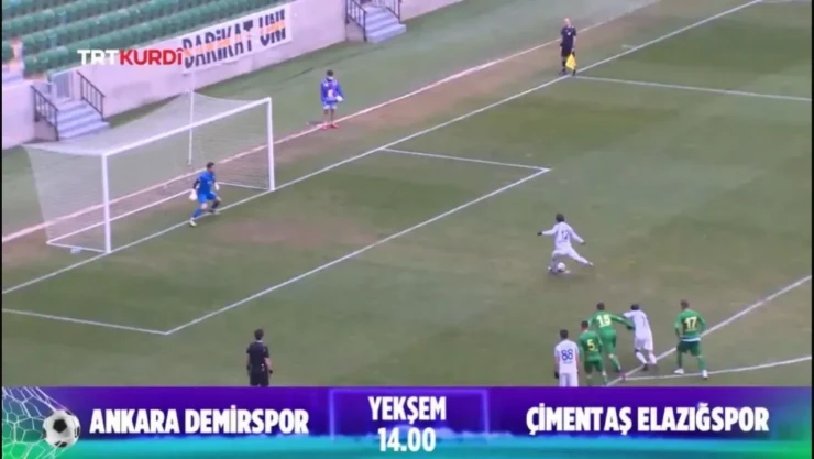 2.Lig Kırmızı Grup'ta Pazar günü Ankara TCDD Ankara Demirspor stadında saat 14.00'da başlayacak Ankara Demirspor- Çimentaş Elazığspor karşılaşmasının TRT Kurdi'den canlı yayınlanacağını TRT kurumu hazırladığı fragmanla izleyicilerine resmen duyurdu.